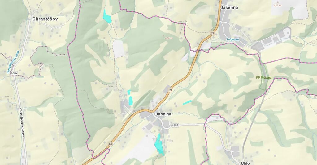 Předmětem dražby je ideální podíl 1/36 pozemků – trvalý travní porost o výměře 40068 m2 v k.ú. Lutonina, okres Zlín.