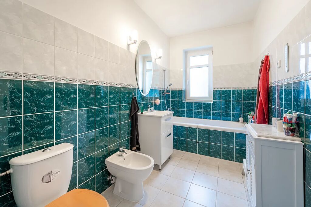 II. a zároveň poslední obytné patro je řešeno jako klidová zóna tedy dvě ložnice, pokoj a koupelna s vanou, toaletou i bidetem.