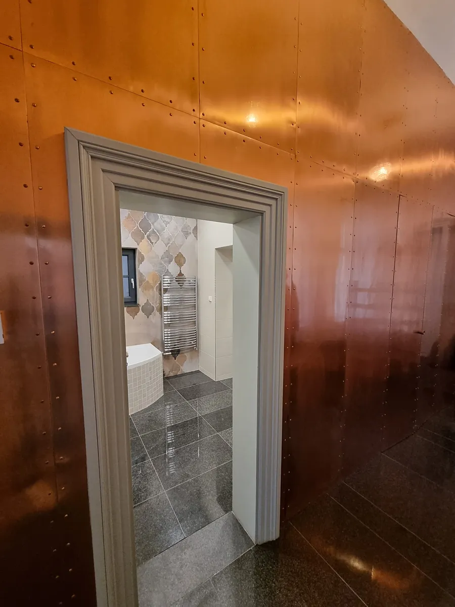 • 129 m² moderního obytného prostoru s vysokými stropy a štuky