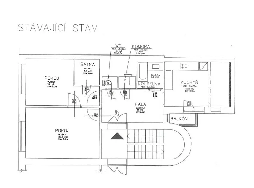 kuchyni s jídelním koutem o výměře cca 16 m² a menším balkonem orientovaným na západ do klidného vnitrobloku,