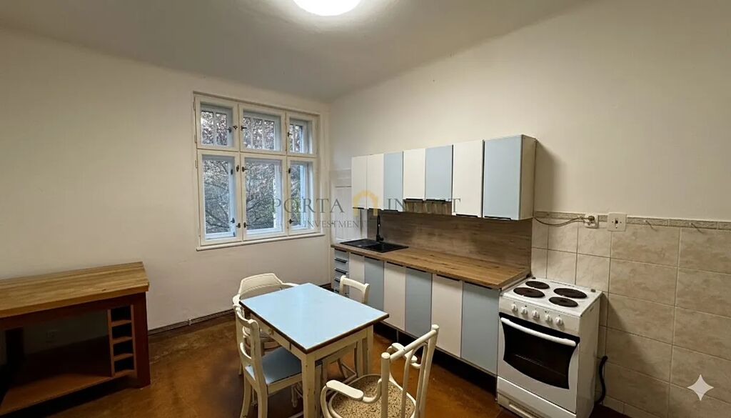 Byt se nachází ve zvýšeném přízemí historické vily, která je obklopena vzrostlou zelení. Atmosféru bydlení dokreslují původní parketové podlahy v perfektním stavu, vysoké stropy a nově zrekonstruovaná koupelna, která kombinuje moderní komfort s dobovým charakterem interiéru.
