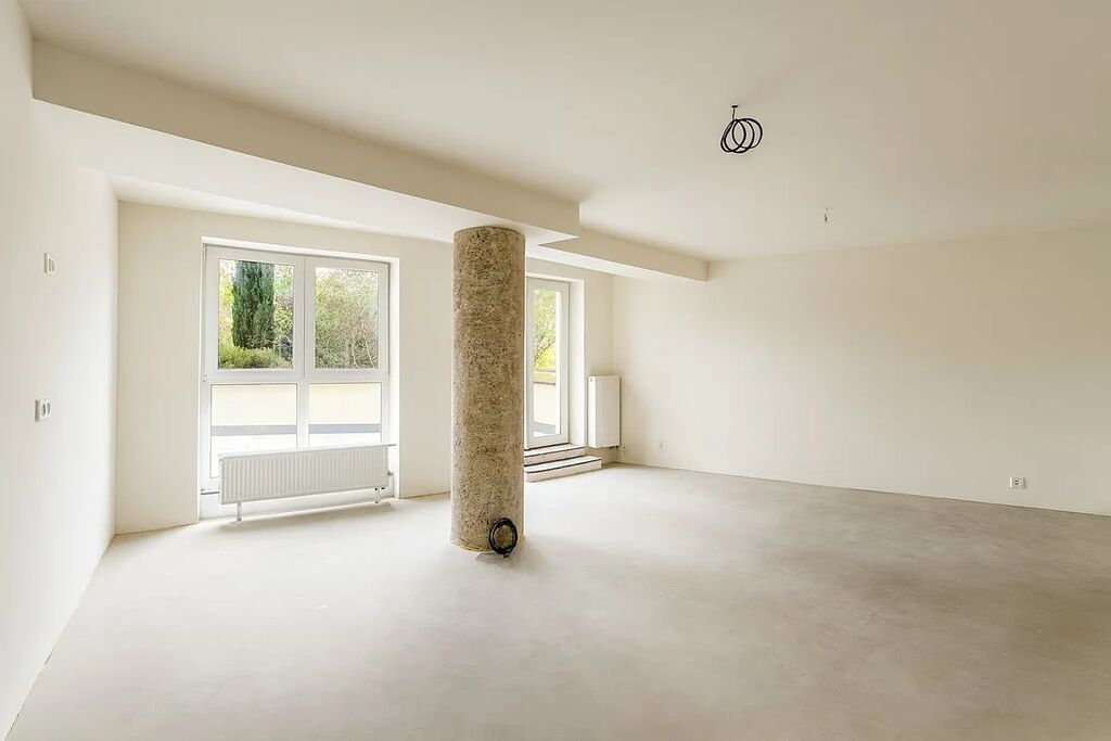 Jednotka je zkolaudovaná a dokončená ve standardu „white wall“ – součástí předání je kompletně hotová koupelna včetně zařizovacích předmětů, interiérové i vstupní dveře, finálně upravené stěny, příprava na kuchyňskou linku a rekonstruovaná terasa. Na přání lze zajistit dokončení interiéru na klíč dle přání kupujícího.