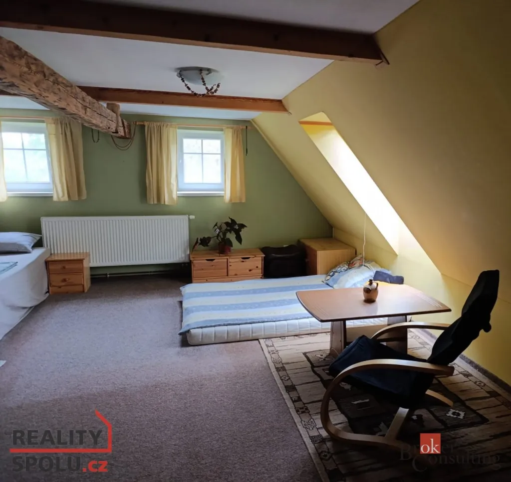 • V horním patře se nachází prostorná ložnice ideální pro odpočinek.