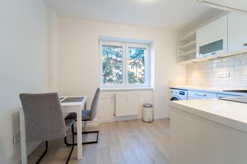 Nabízím pronájem světlého bytu 1+1 v bytovém domě ve Chvaleticích. Byt je po celkové velmi vkusné rekonstrukci, nachází se v 2. nadzemním podlaží a má podlahovou plochu 30 m2. Vedle bytu se nachází společná lodžie, kterou je možné využít k sušení prádla. Byt je vybaven, nábytek na fotkách je součástí pronájmu.