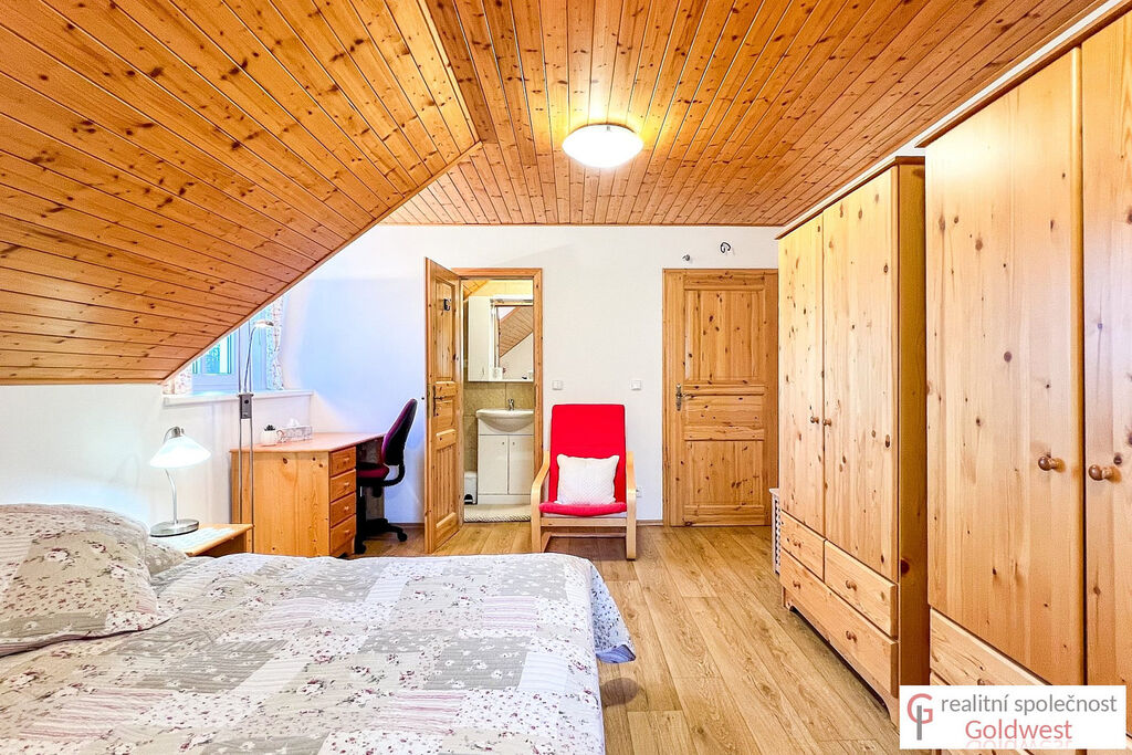 V prvním patře se nachází 4 samostatné velké pokoje, každý s vlastní koupelnu s WC a sprchovým koutem. V patře je umístěna infrasauna, kde můžete relaxovat a užívat si pohody a tepla po celý rok.