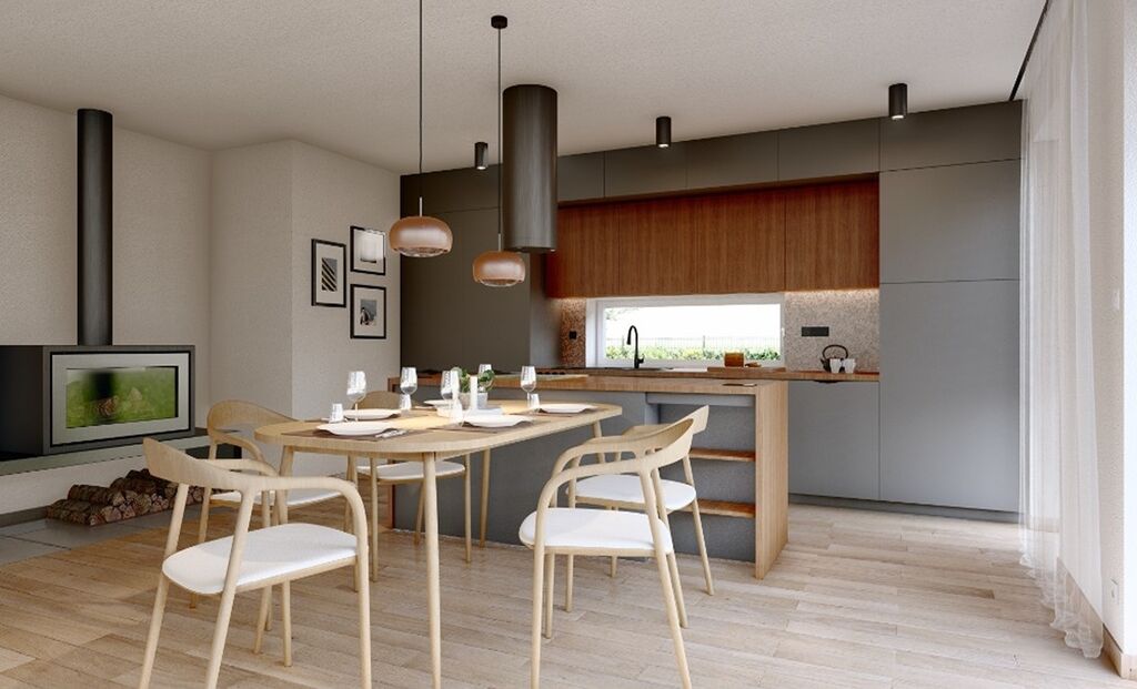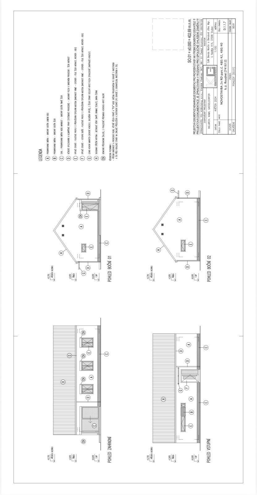 V ceně není: kuch.linka, svítidla, žaluzie, klimatizace, komín, nábytek, pergola, finální úprava zahrady.