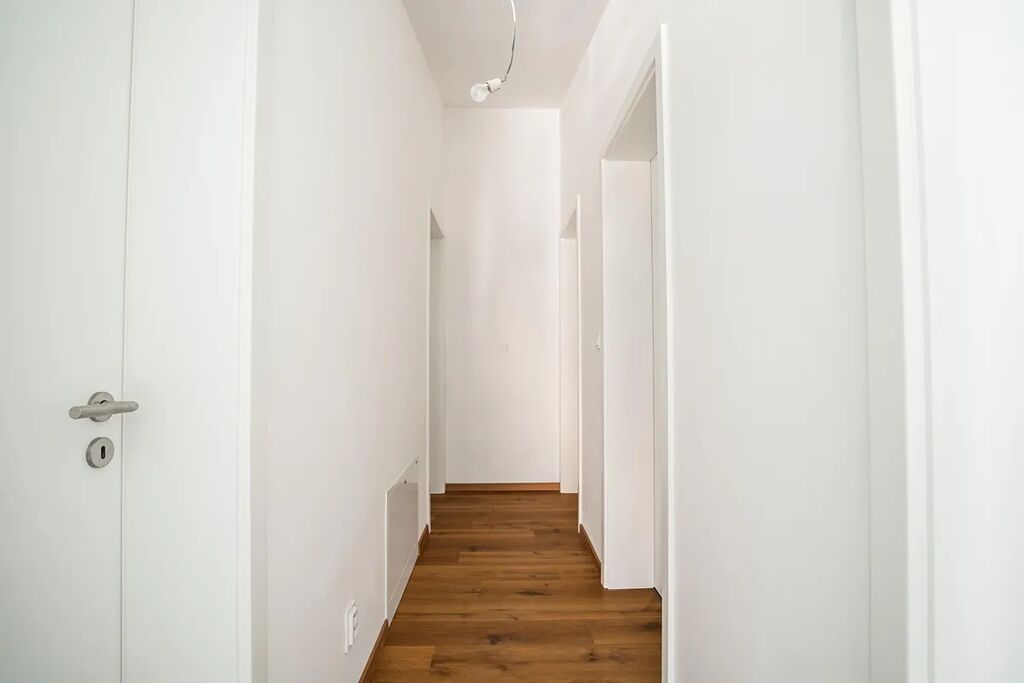 Podlahy pokryté kvalitním vinylem a dlažbou, okna s trojskly pro skvělou tepelnou a zvukovou izolaci.