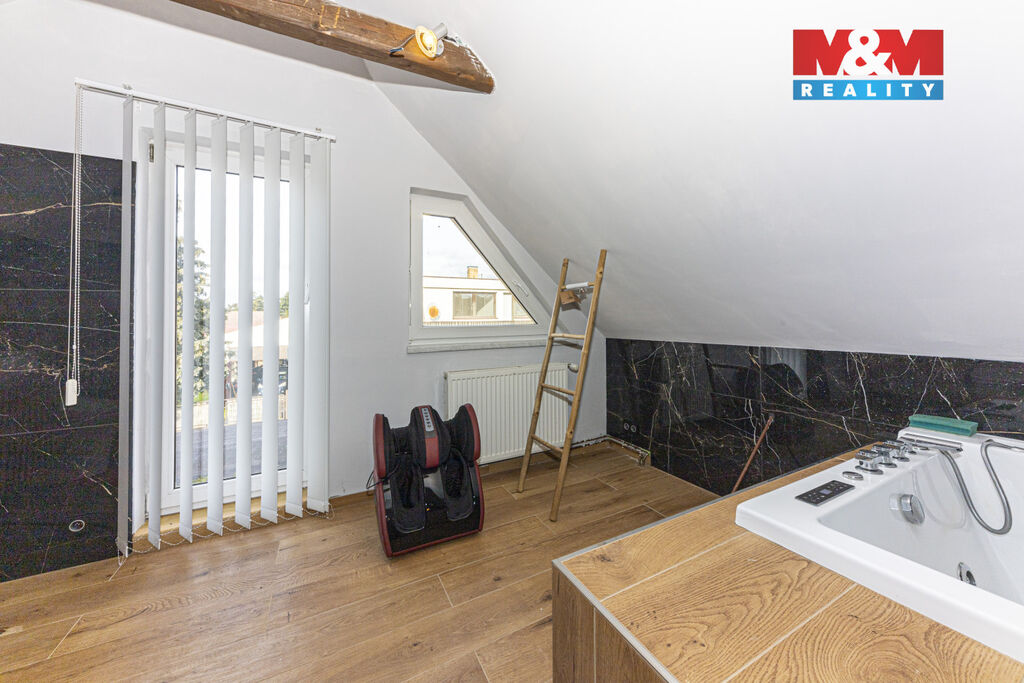 Velkou předností této nemovitosti je domácí wellness v patře, vybavené infrasaunou, vířivkou a masážním křeslem – perfektní místo pro odpočinek po náročném dni. K relaxaci poslouží krytý venkovní bazén na udržovaném pozemku o rozloze 539 m².