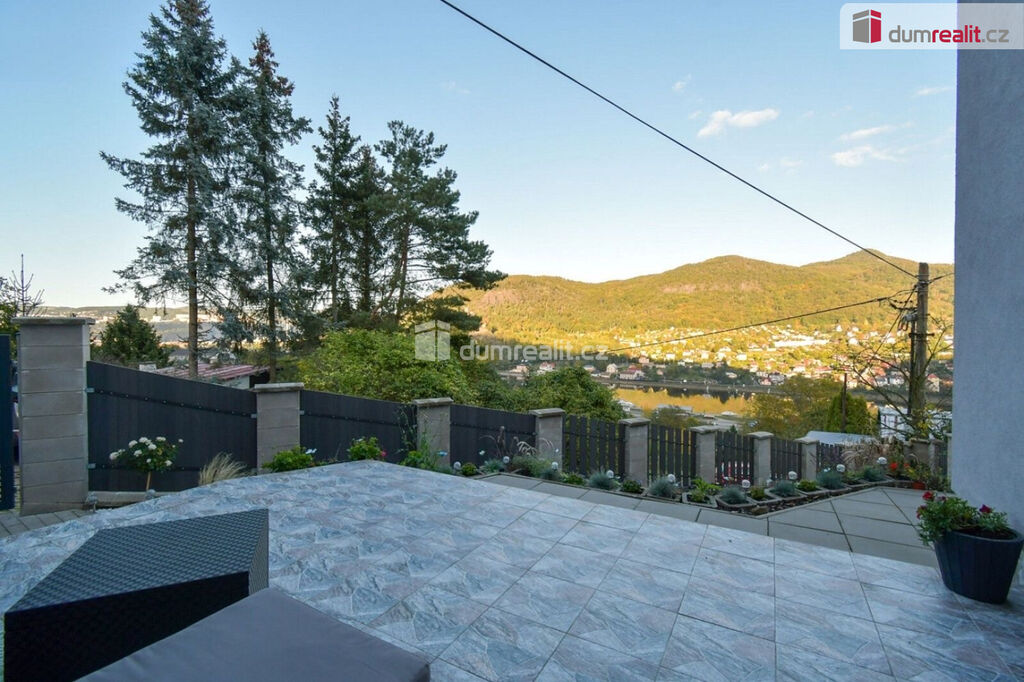 K domu náleží terasa, plocha pro ideální pro odpočinek, grilování nebo posezení na terase s výhledem na krásy Českého středohoří.