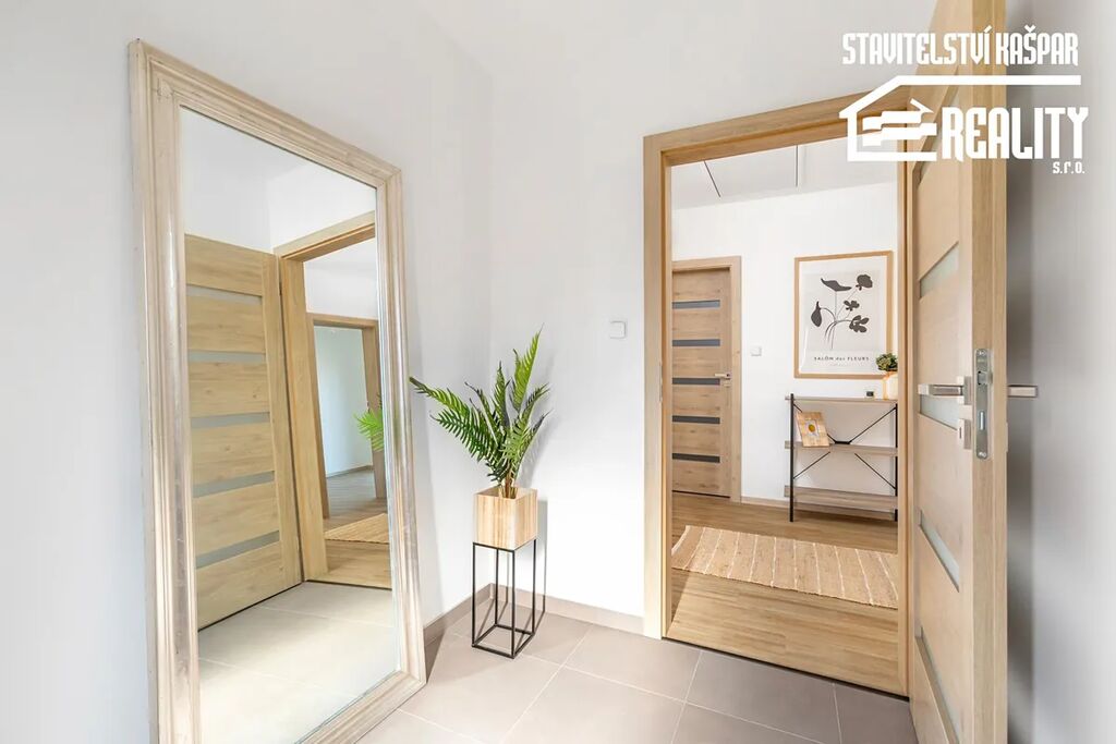 V domě se nachází zádveří, chodba, technická místnost, samostatná toaleta, prostorný obývací pokoj s kuchyňským koutem, ze kterého je přímý vstup na terasu, ložnice, dva pokoje a koupelna. Vytápění je zajištěno vodovodním podlahovým topením napojené na tepelné čerpadlo vzduch-voda. (Daikin Altherma III generace) Součástí stavby je také příprava pro venkovní žaluzie (kastlík + el. kabel), vzduchotěsné výlezové schůdky Wippro včetně 15 m2 pobití půdního prostoru z prken.