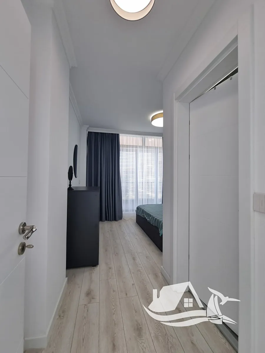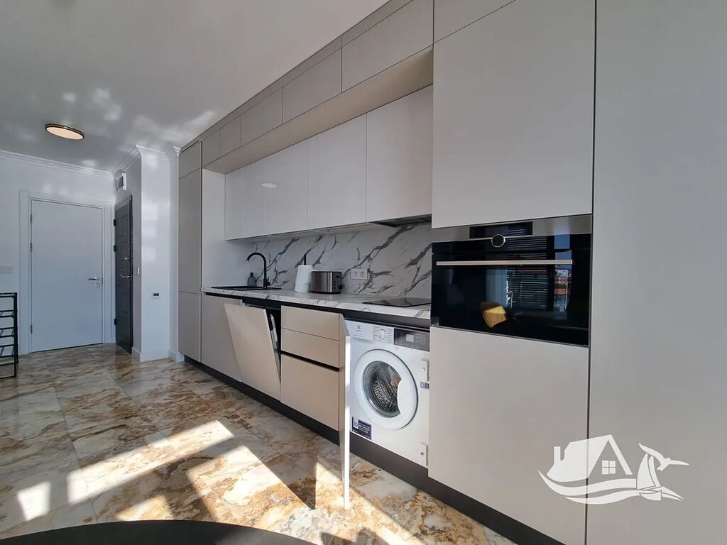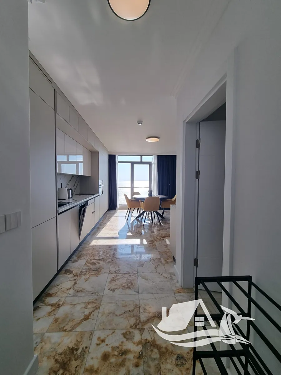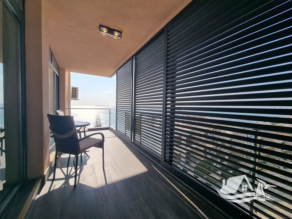 Tento prostorný apartmán 2+kk o ploše 78,56 m² se nachází ve 3. podlaží elegantního šestipatrového komplexu v první linii u moře. Interiér je navržen tak, aby nabízel dostatek prostoru i přirozeného světla. Dispozice zahrnuje světlý obývací pokoj s kuchyňským koutem, útulnou ložnici, koupelnu a terasu, z níž se otevírá panoramatický výhled na moře. Každý krok po této terase připomíná, že moře je zde skutečně součástí vašeho života.