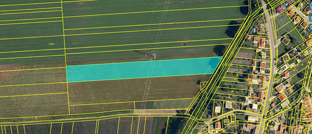 Předmětem dražby je ideální podíl 1/50 pozemku – orná půda o výměře 11522 m2 v k.ú. Měnín, okres Brno-venkov.