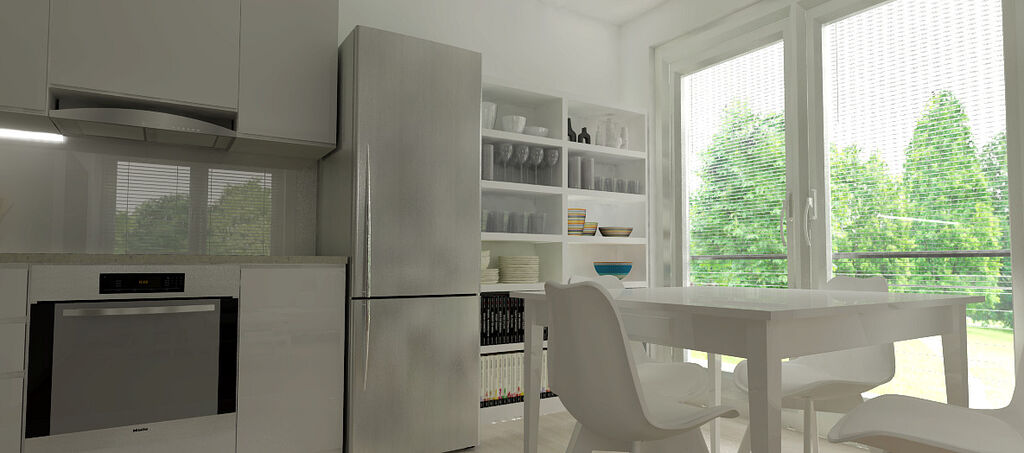 Tento byt se nachází v 3. NP bytového domu na klidném místě, v bývalém areálu kasáren v Čáslavi, který je novostavbou do nadstandardní energetické skupiny "B" dle programu "Zelené úsporám" jež zahrnovala mimo jiné i plastová okna s trojskly, venkovní žaluzie, rekuperaci vzduchu, 3x kondenzační kotel, tepelné čerpadlo s klimatizací, extrémní zateplení domu.