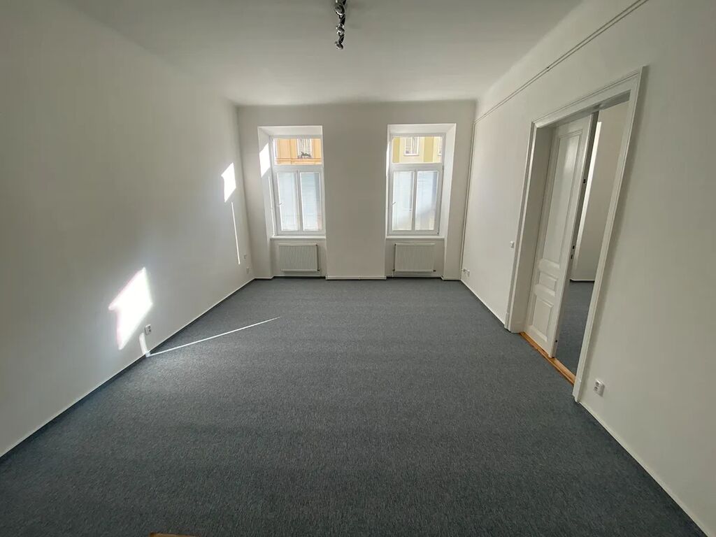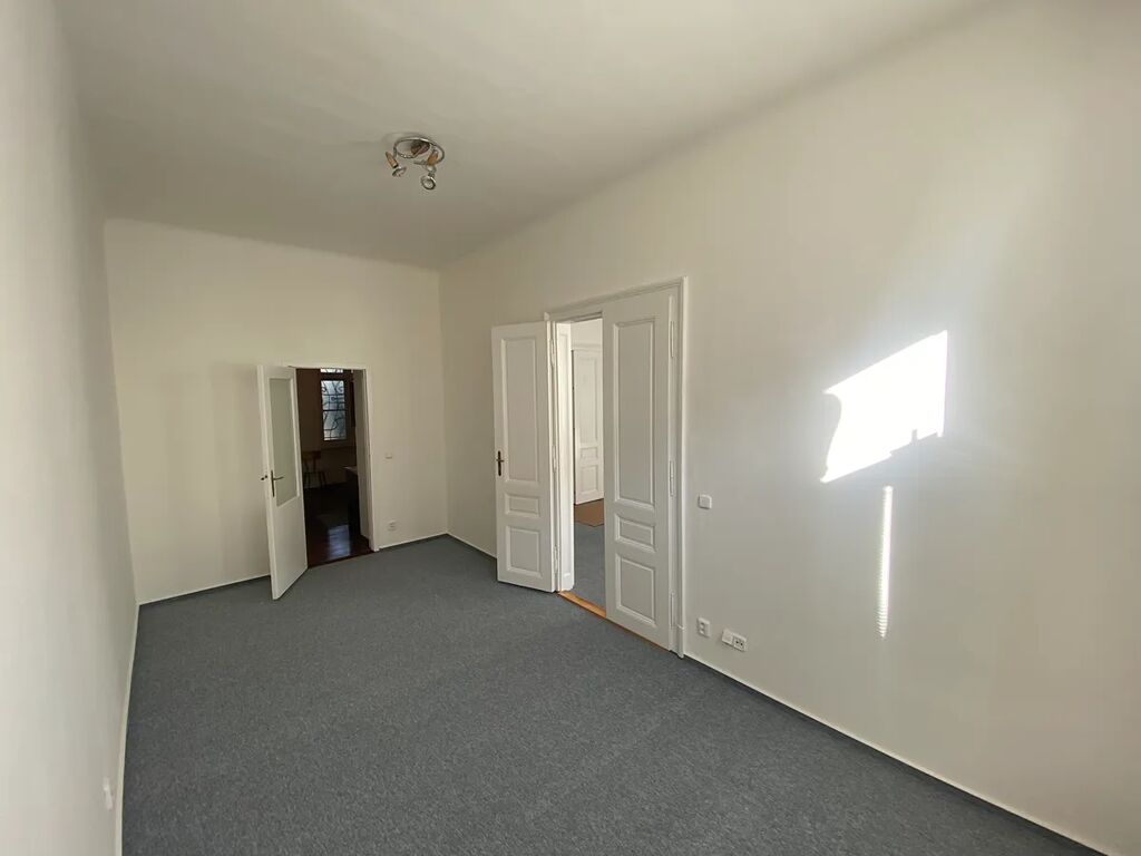 Pronájem prostorného bytu 2+1 (3+kk) o ploše 78 m2, ve 2.patře bez výtahu, v historickém domě po rekonstrukci . Dům je v klidné jednosměrné ulici u parku, nedaleko od centra - do pěší zóny jsou to tři zastávky tramvají nebo trolejbusem.