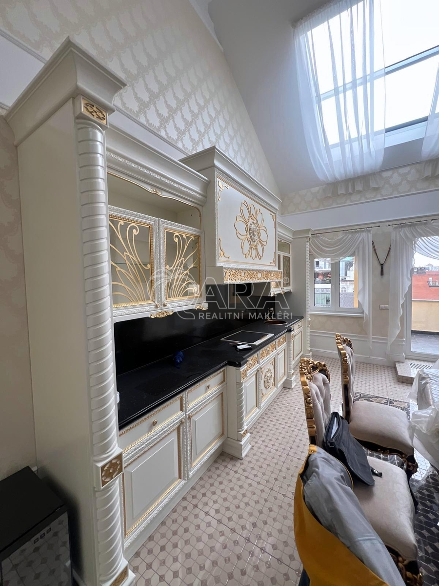 Nabízíme Vám k prodeji výjimečný mezonetový byt o celkové ploše 214,9 m², z toho 181,2 m² interiéru a 33,7 m² tvoří dvě prostorné terasy. Byt se nachází ve dvou nejvyšších podlažích historického domu v prestižní lokalitě Prahy 1 – Josefov a nabízí naprosté soukromí, mimořádnou atmosféru a jedinečné výhledy na starou Prahu.