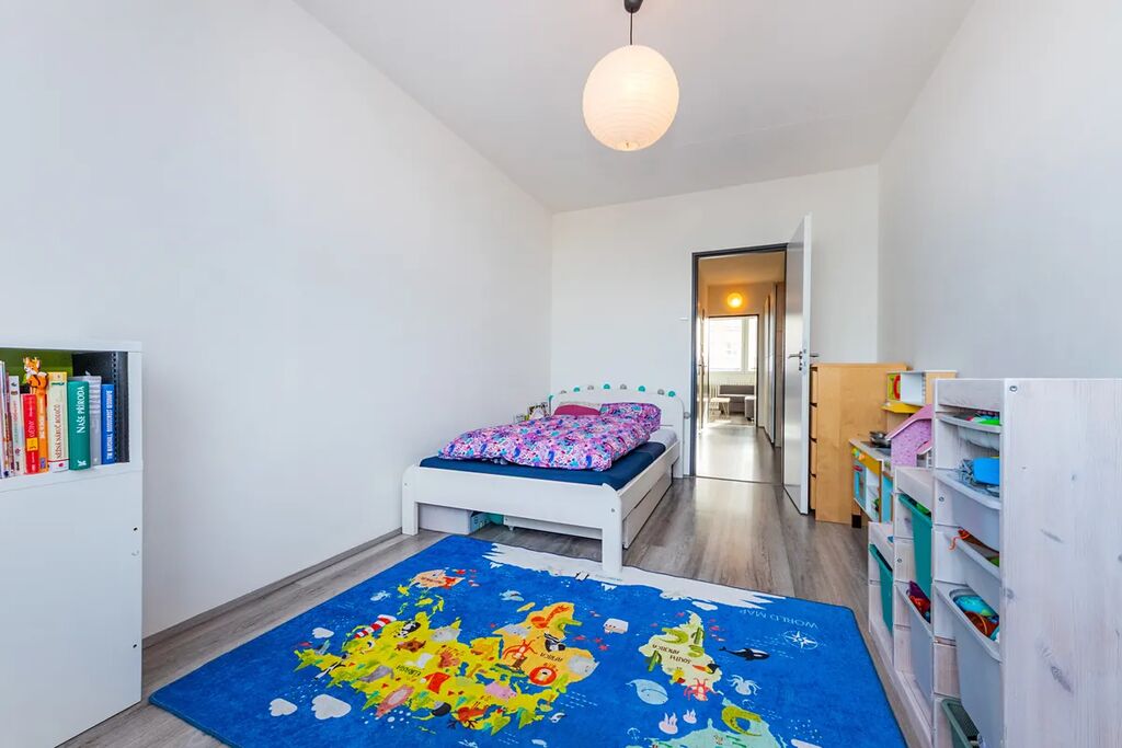 Obývací pokoj je orientovaný na jih a je z něj přímý vstup na balkon, dvě ložnice s okny na sever, kuchyň je orientovaná na východ. S bytem si kupujete praktickou předsíň před vstupem do bytu, kam pohodlně umístíte kočárek nebo kola, k bytu náleží sklep. Měsíční náklady pro 3 osoby jsou 5 486 Kč + elektřina (700 Kč).
