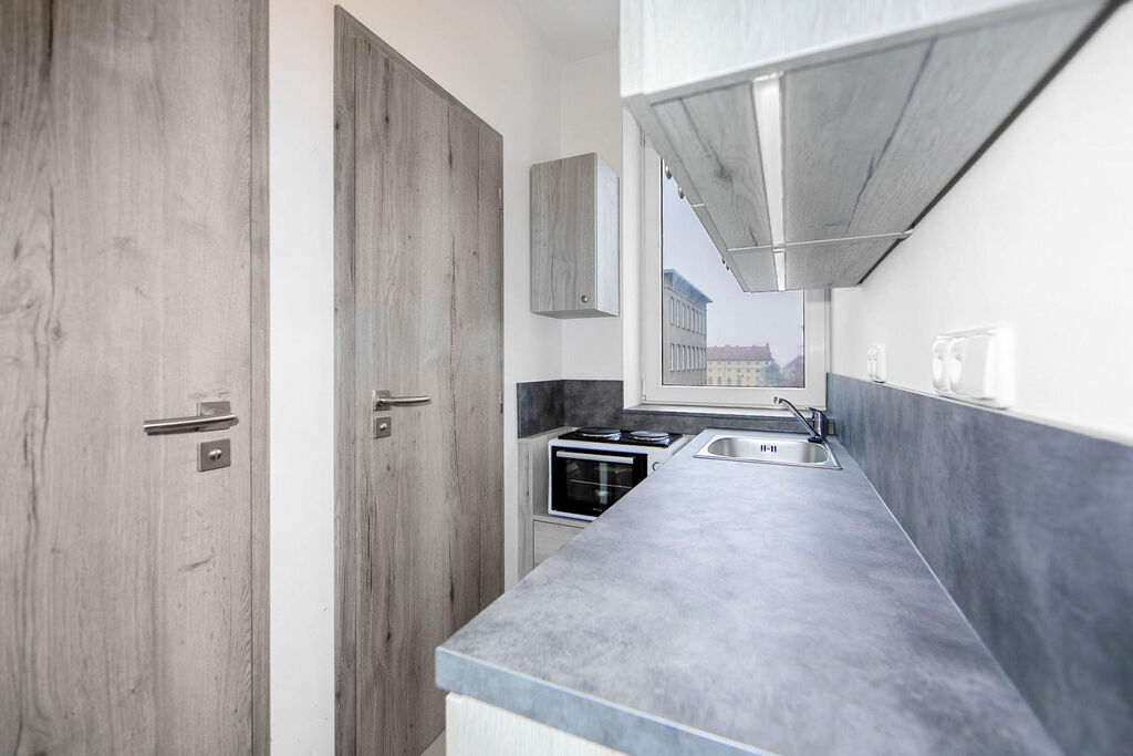 Nabízíme k dlouhodobému pronájmu krásný byt o výměře 22,27 m² po velmi pěkné rekonstrukci o dispozici 1+kk v žádané lokalitě Plzně ul. Slovanská alej. Jedná se o velmi příjemnou a klidnou lokalitu. V rámci kompletní rekonstrukce došlo k vyzdění koupelnového jádra a osazení sprchového koutu, osazení WC. Dále k rozvodu nové elektroinstalace v celém bytě, voda a odpady jsou vedeny v plastu, současně došlo k vyrovnání podlah a stěn v celém bytě vč. položení nové dlažby. Kuchyňská linka s vestavnými spotřebiči i velká vestavěná skříň s lednicí v pokoji je na zakázku vyrobena truhlářem. Vytápění bytu je řešeno dálkově, ohřev vody bojlerem. Plastová okna a internet jsou samozřejmostí. Bytová jednotka je situována do posledního patra zatepleného cihlového domu s výtahem, kde díky kvalitě provedenému zateplení domu ušetříte hodně finančních prostředků za vytápění bytu. K bytu je možné užívat též sklep cca 5 m². Nastěhování je možné ihned. Pronájem bytu Vám vřele doporučuji především pro velmi klidné bydlení v bytovém domě, okolo kterého se nachází velké množství zeleně. Dále pro pohodlnou docházku vašich dětí do základní školy č. 21, která je hned u domu, MHD je za domem. V neposlední řadě pro plnou občanskou vybavenost města Plzně. Dlouhodobý nájem je k dispozici pouze nekuřákům a slušným lidem vůči, kterým není vedeno žádné exekuční ani insolvenční řízení. První platba je ve výši 57 200,-Kč (31 500,- Kč jistota, 10 500,-Kč nájemné + 2500 služby, 12 700,-Kč provize RK). Elektřinu a plyn si nájemce převádí na sebe. Velice ráda Vás osobně přivítám na prohlídce pěkného bytu. Pro sjednání prohlídky či jakékoliv informace volejte na uvedený telefon.