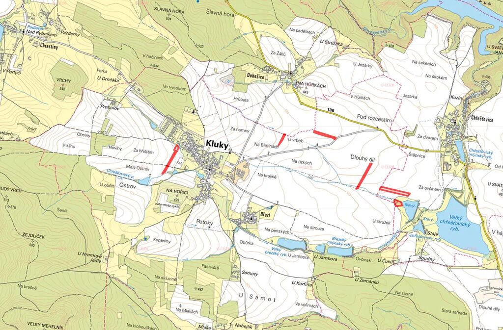 V katastrálních územích Chřešťovice a Kluky u Písku, nabízím k prodeji vlastnictví na souboru zemědělských pozemků. Pozemky jsou vedeny na dvou listech vlastnictví – LV 197 pro k. ú. Chřešťovice a LV 448 pro k. ú. Kluky u Písku.