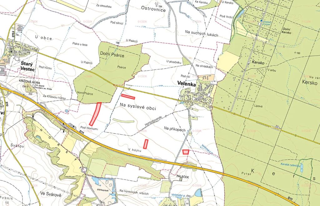 V katastrálním území Velenka, okres Nymburk, nabízím k prodeji soubor zemědělských pozemků ve výlučném vlastnictví. Všechny pozemky jsou zapsány na listu vlastnictví č. 560 a vedeny jako orná půda.