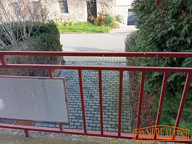 1. patro – chodba, koupelna s vanou, WC, 2 pokoje, balkon, šatna, obývací pokoj s kuchyní a balkonem