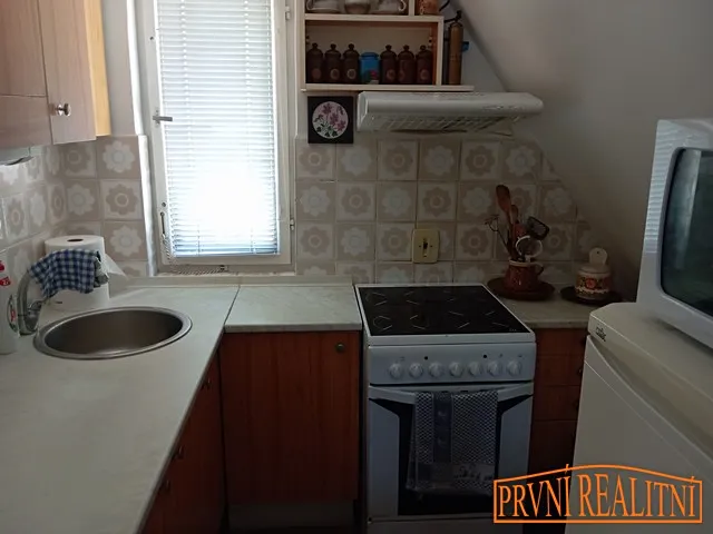 přízemí – zádveří, obývací pokoj s krbem a balkonem, kuchyň, koupelna a WC