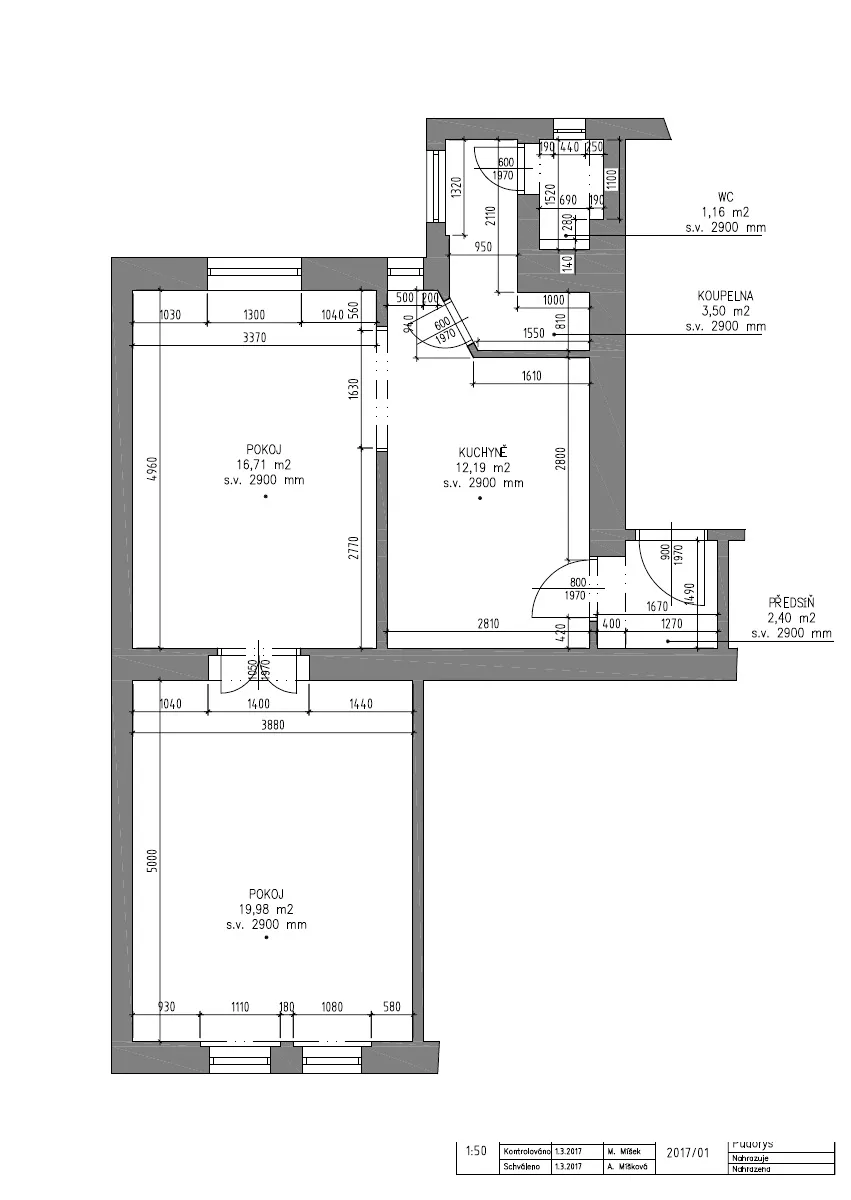 - koupelny se sprchovým koutem a WC (3,50 m2 a 1,16 m2)
