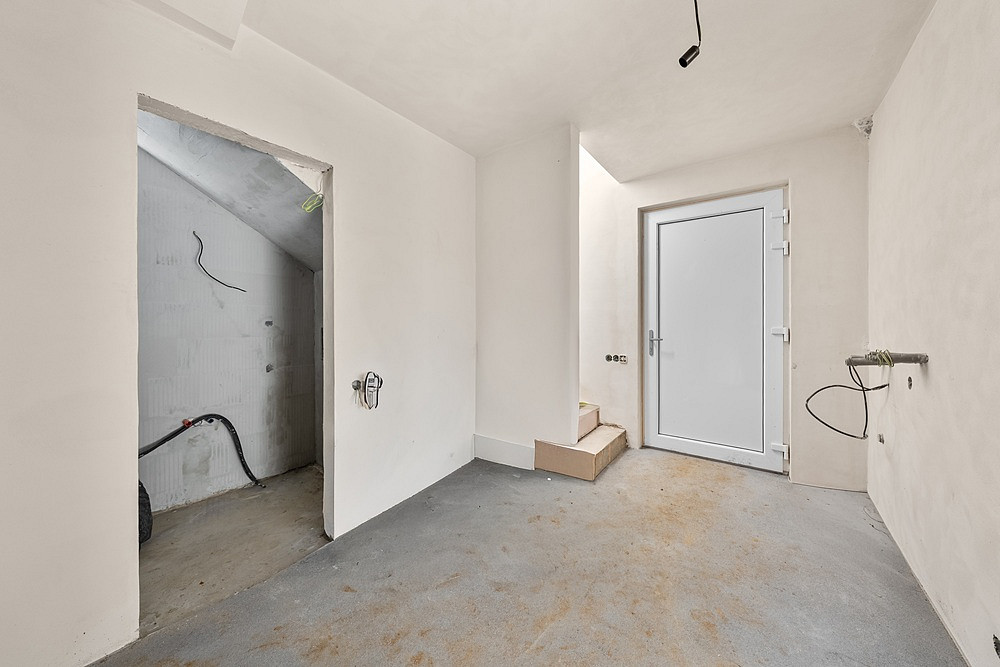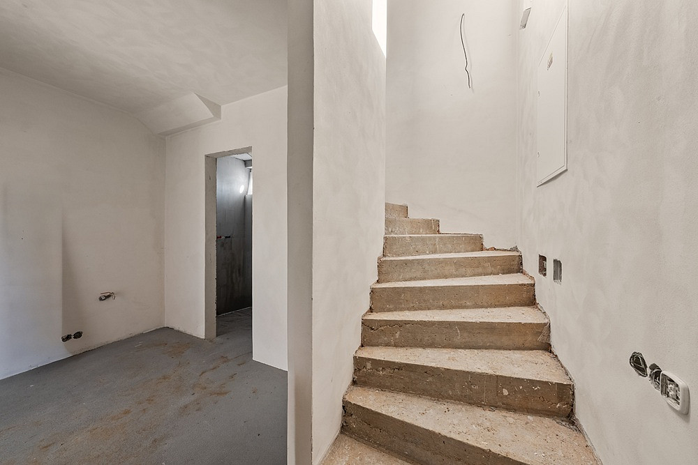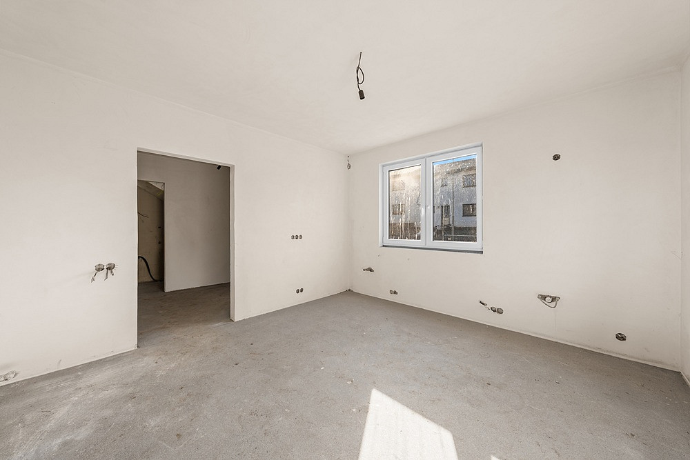 V přízemí domu se nachází vstupní chodba se vstupem do prostorné kuchyně, která navazuje na obývací pokoj se vstupem na venkovní terasu, připravená koupelna se sprchovým koutem a WC. Schodištěm se dostaneme do prvního patra, kde se nacházejí 3 samostatné pokoje a připravená koupelna s vanou společná s WC.