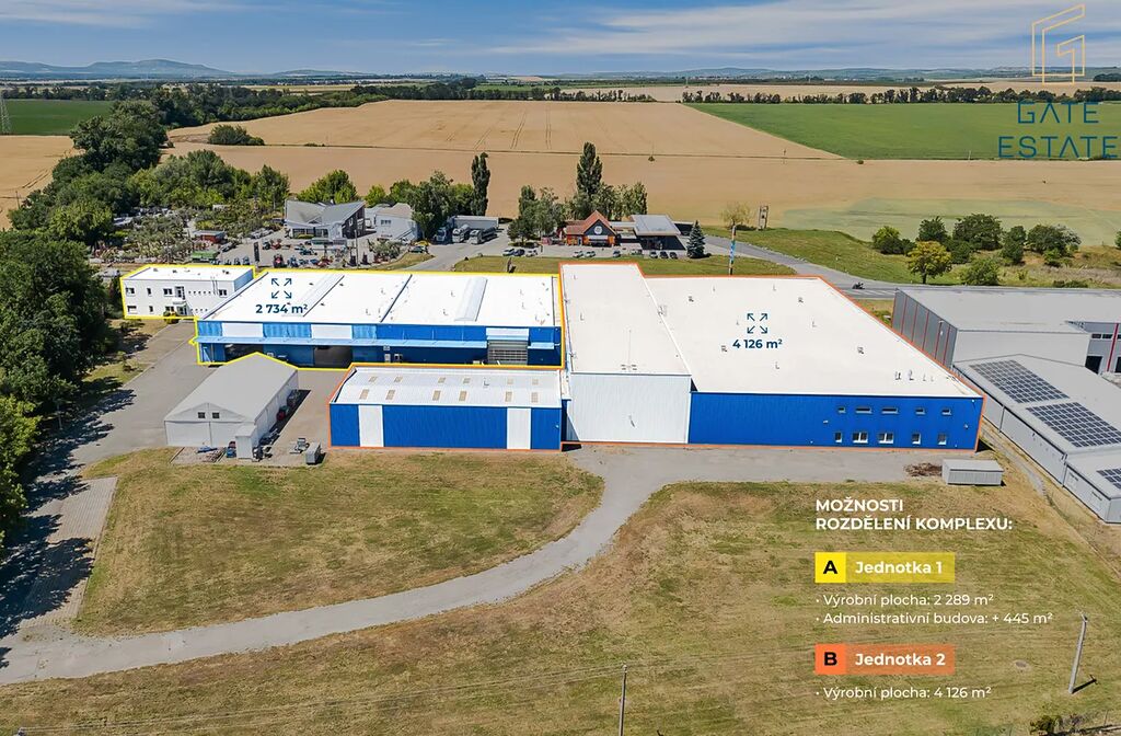 Obě jednotky lze dále dělit, doplňovat příčky nebo přizpůsobit zázemí. Areál je flexibilní.