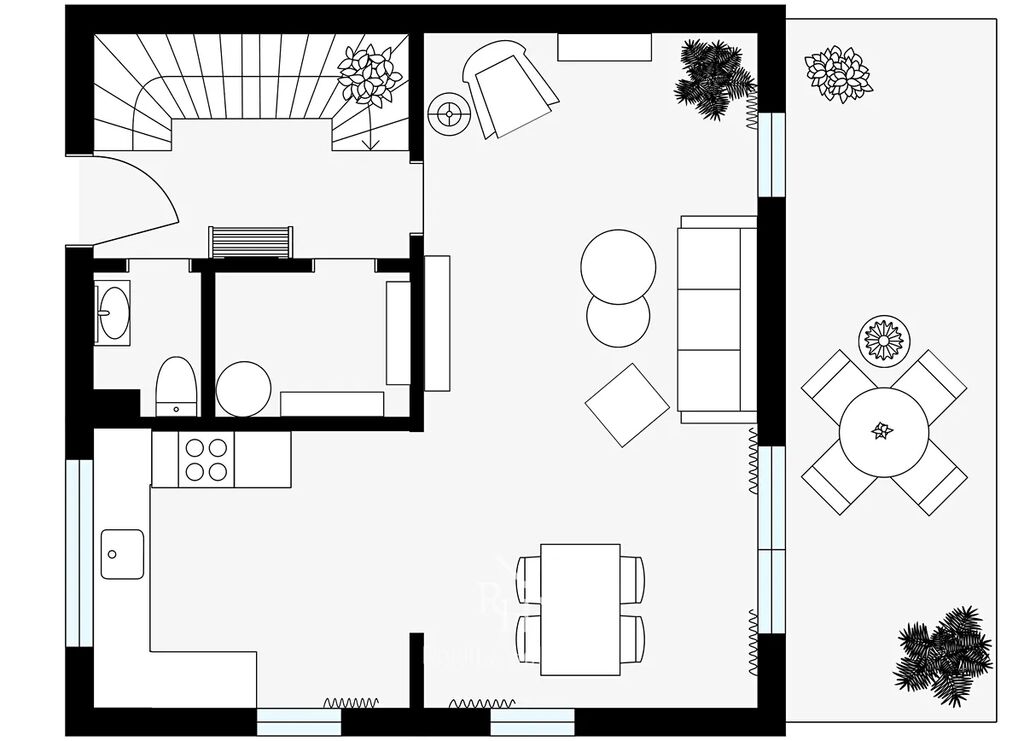 Zahrada, která čeká na vaše nápady – ať už si ji proměníte v zelenou oázu, rodinné hřiště nebo místo s bazénem. Přímý vstup z obýváku propojuje vnitřní a venkovní prostor. Komfort doplňuje parkování pro dvě auta přímo před domem.