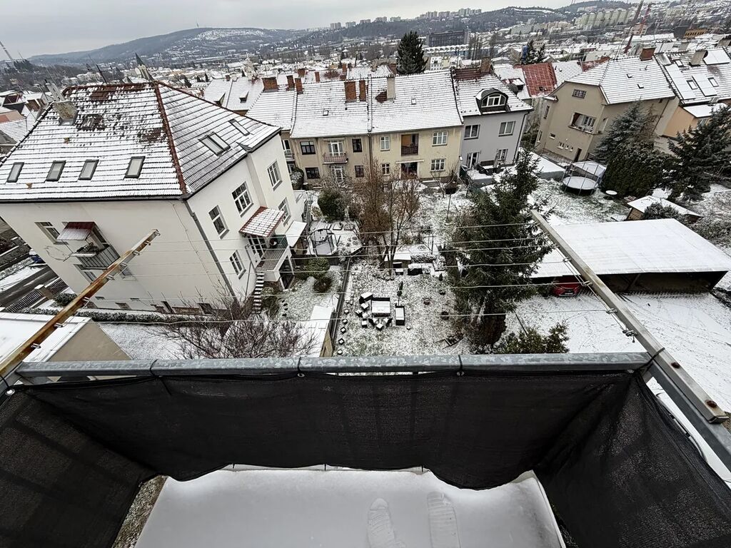 Jednotka je v osobním vlastnictví a k jeho přednostem patří balkón s krásným výhledem na Brno a také zahrada ve společném užívání. Celkové měsíční náklady činí 5.000 Kč včetně energií.