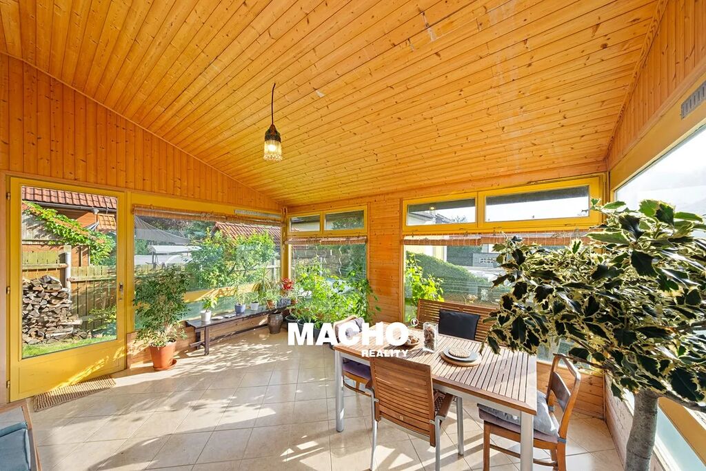 Dům o celkové podlahové ploše vč. příslušenství 333 m², disponuje dvěma bytovými jednotkami na třech podlažích. Je tak vhodný i pro vícegenerační bydlení. V 1. NP je samostatným bezbariérovým vstupem přístupná garsoniéra s kuchyňským koutem a koupelnou s vanou a toaletou. Dále se na podlaží nachází garáž pro tři vozy, technická místnost a z venku přístupný sklep. 2. NP zahrnuje předsíň, prostorný pokoj s krbovými kamny, obývací pokoj s kuchyňským koutem a přímým vstupem do zimní zahrady, velkou šatnu a koupelnu s rohovou vanou, sprchovým koutem, toaletou a bidetem. 3. NP nabízí ložnici, dva pokoje a koupelnu s vanou a toaletou.