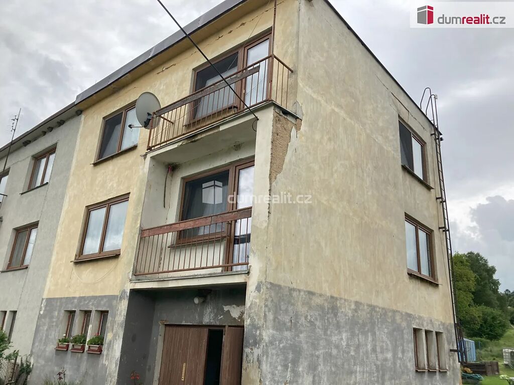 Technický stav domu : nová plechová střecha zateplená, nová plastová okna s trojskly, nové vstupní dveře do domu, nový vodovodní vrt, odpady svedeny do betonové jímky. Elektroinstalace částečně vyměněna /v 1.patře/, fasáda, balkony a vytápění v původním stavu. Na zateplení fasády a výměnu otopného zdroje za ekologický lze u tohoto domu čerpat státní dotace.
