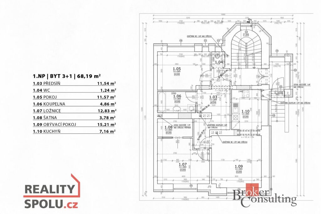 Čtyři bytové jednotky, 4 podlaží, užitná plocha 291 m²