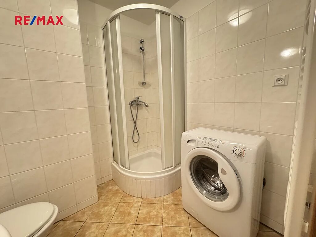 Dispozice nabízí komfortní obytný prostor s kuchyňským koutem, koupelnu se sprchovým koutem a toaletou s výhledem do klidného vnitrobloku.