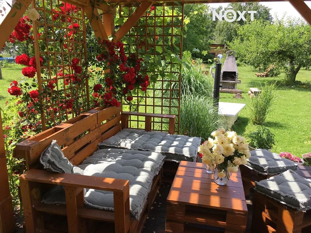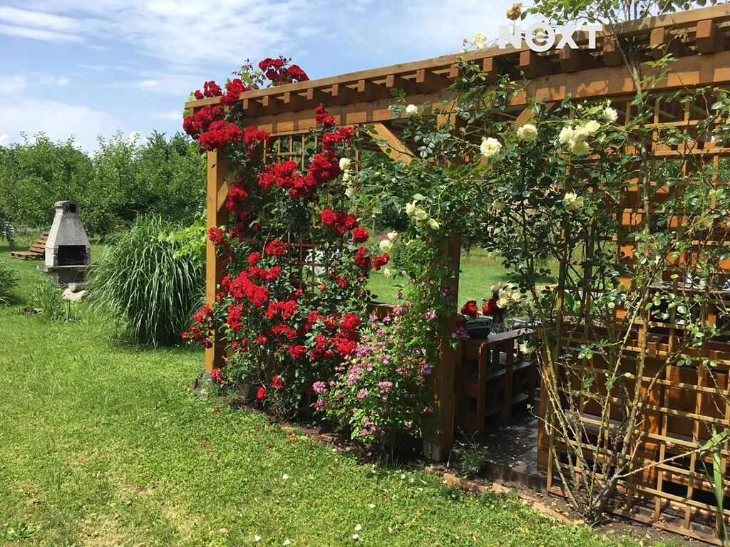 Na pozemku se nachází menší zahradní domek, který slouží jako praktické zázemí během pobytu na zahradě. Jedná se o drobnou stavbu nezapisovanou do katastru – vhodnou jako sklad zahradního vybavení či kryté posezení.
