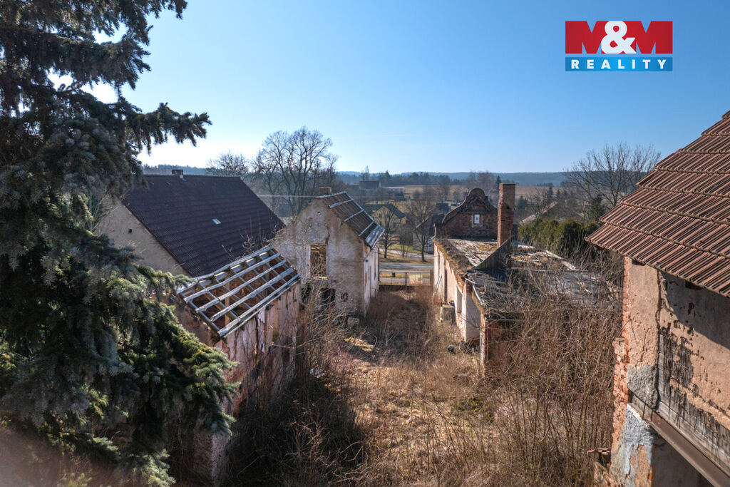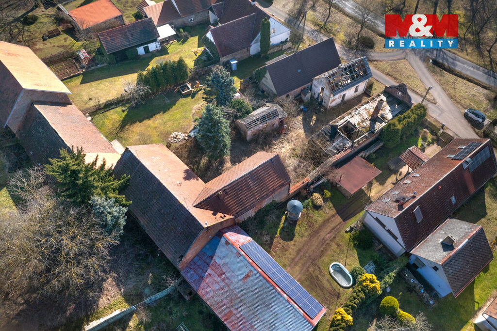 K prodeji je zde pozemek o velikosti 856 m2, na kterém stojí dva rodinné domy s dvěma čísly popisnými a velká stodola. Oba domy jsou ve špatném stavu a jsou tak určeny buď k celkové rekonstrukci anebo přímo k demolici. Demoliční výměry na oba domy a projektová dokumentace na nový dům jsou k dispozici.