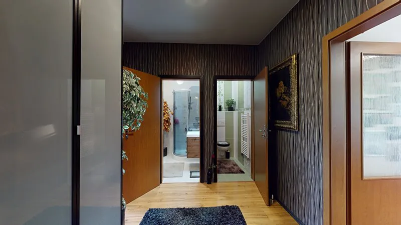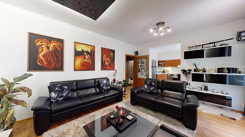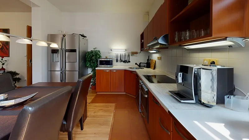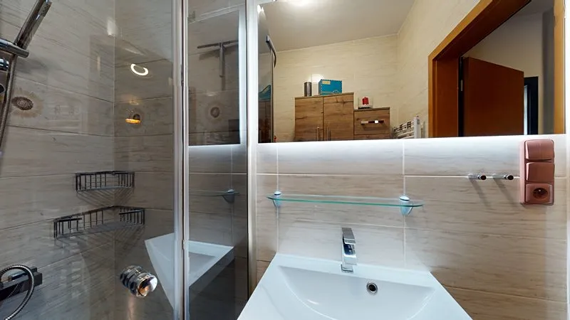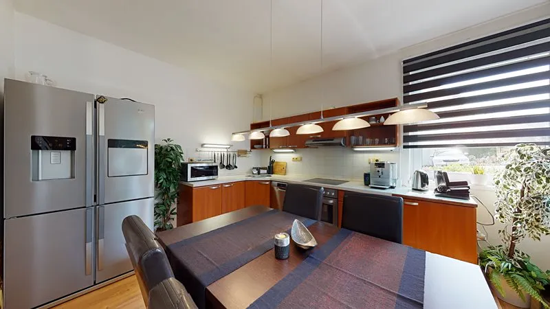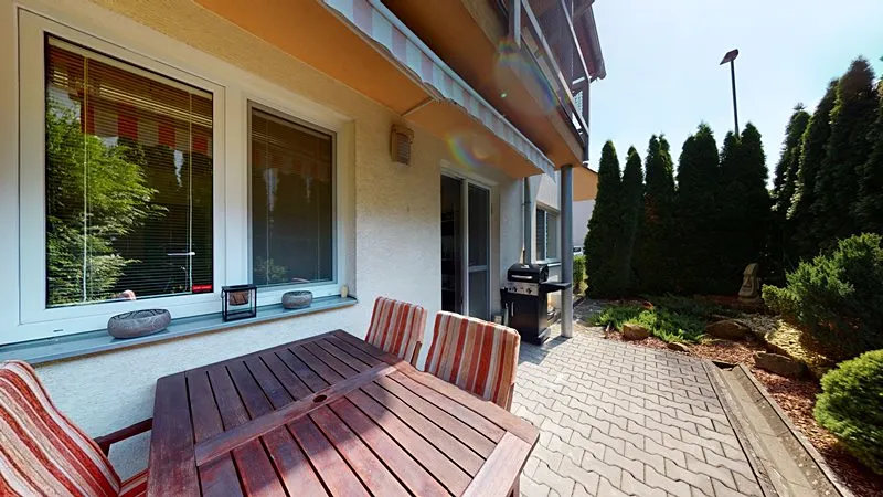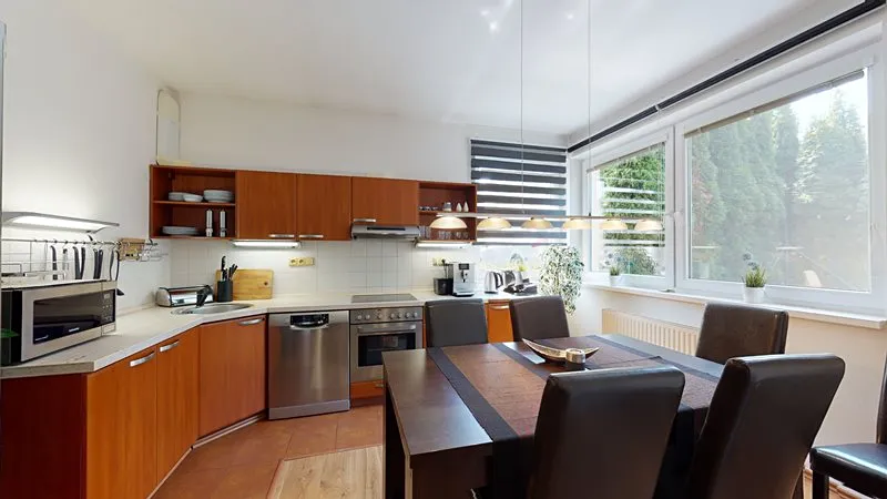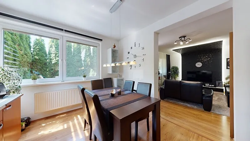 Nabízím Vám exkluzivně ke koupi krásný a vkusně zařízený byt 2+1 o celkové rozloze 66 m2 umístěný ve zvýšeném přízemí z celkových 3 pater cihlového domu ve Vizovicích na ulici 3. května (Janova hora). Bytový dům je postaven v roce 2007. Nízké náklady na bydlení – byt má samostatné měřiče všech dodávaných energií. Vytápění a ohřev vody zajišťuje vlastní plynový kotel umístěný v technické místnosti na chodbě. Byt má rozlohu 66 m2, kde se nachází obývací pokoj, ložnice s nábytkem na míru a se vstupem na lodžii, kuchyň s jídelním koutem, vstupní chodba, koupelna a samostatné WC. K bytu náleží rovněž sklep umístěný v přízemí bytového domu. Součástí bytu je rovněž lodžie, a především krásná velká terasa o výměře 35 m2 (není započtena v rozloze bytu) poskytující odpočinkovou zónu a soukromí včetně zahradního nábytku. Kuchyňská linka je na míru včetně elektrické trouby, sklokeramické desky a digestoře, myčky na nádobí, lednice a jídelní sestavy. V obývacím pokoji je sedací souprava, TV, nábytek na míru. Rovněž je nábytek na míru ve vstupní chodbě, ložnici. V koupelně je sprchový kout, umyvadlo se skříňkou a zrcadlem a elektrický topný žebřík. V obývacím pokoji je francouzské okno se vstupem na terasu. Ve všech oknech jsou žaluzie a v kuchyni navíc rolety. V bytě je zabezpečovací zařízení – alarm. Parkování je možno přímo před bytovým domem. U bytového domu je dětské hřiště. Byt je možné financovat případně i hypotečním úvěrem. K bytu je možné přikoupit i garáž ve vedlejším bytovém domě – nelze ji koupit samostatně. Prohlídka bytu je možná kdykoliv po předchozí domluvě.