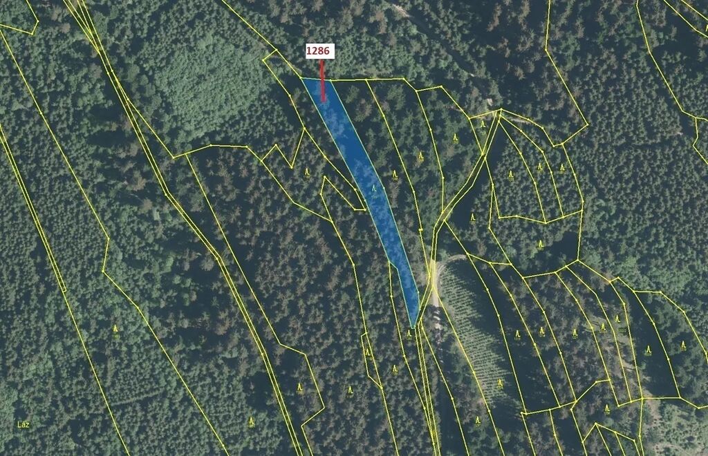 Lesní pozemek o výměře 2442 m2, parcelní číslo 1286, podíl 1/1, katastrální území Lačnov, obec Lačnov, obec s rozšířenou působností Vsetín, okres Vsetín, Zlínský kraj. Po těžbě.