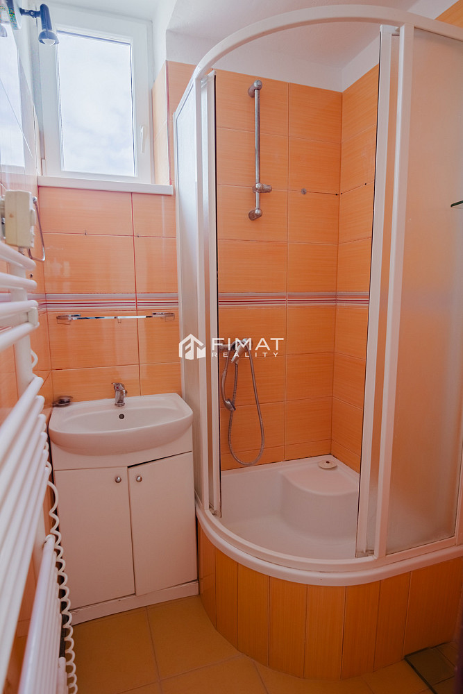 - Koupelna se sprchovým koutem, umyvadlem a přípravou na pračku a sušičku