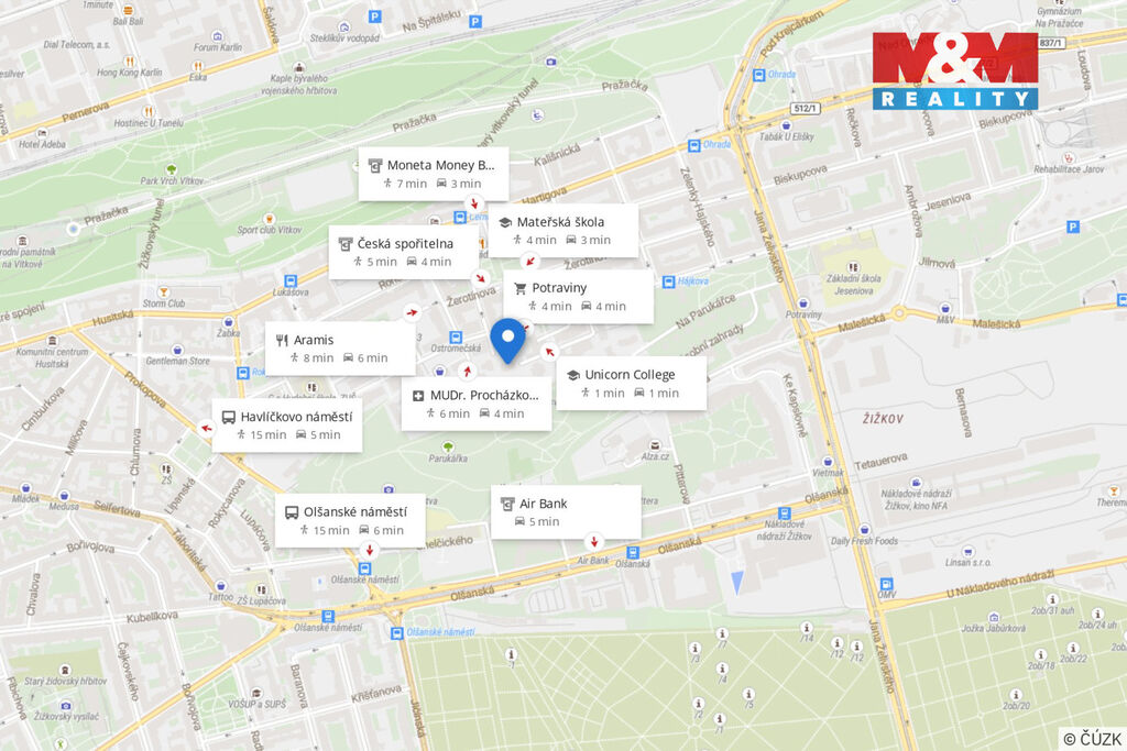 Byt ve vyšším patře domu s výtahem zaujme otevřeným prostorem, velkými okny a výhledy na historické panorama Žižkova i okolní zeleň. Hlavním lákadlem je prostorný obývací pokoj s přímým vstupem na západně orientovaný balkón, ideální na večerní posezení při západu slunce. Moderní, chytře řešená kuchyň, klimatizace a čisté linie interiéru vytvářejí nadstandardní a komfortní zázemí. K bytu patří sklep na patře. Komplex nabízí upravený vnitroblok, podzemní garáže s vlastním parkovacím místem a skvělou dostupnost do centra.
