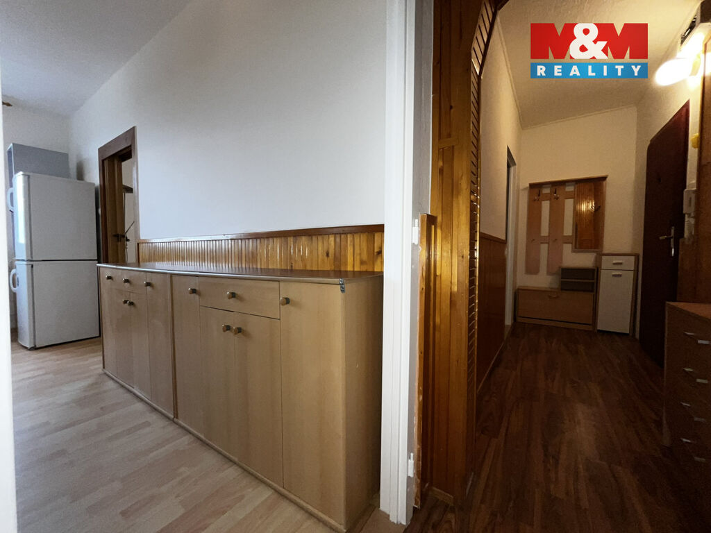 Dispozice bytu zahrnuje průchozí obývací pokoj, ze kterého je vstup do zasklené lodžie, kuchyň, neprůchozí ložnici, koupelnu s WC a oddělenou šatnu. Vybavení zde zůstává. Nájem je 12.500,- Kč, kauce 25.000,- Kč a provize RK ve výši jednoho nájmu. Energie nejsou součástí nájemného a jsou ve výši 3.500,- Kč.