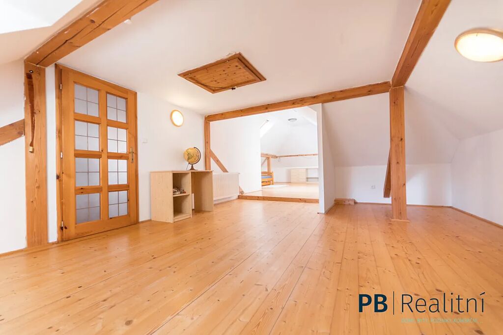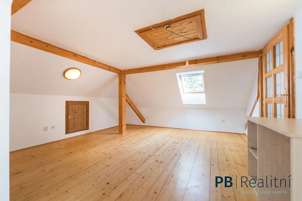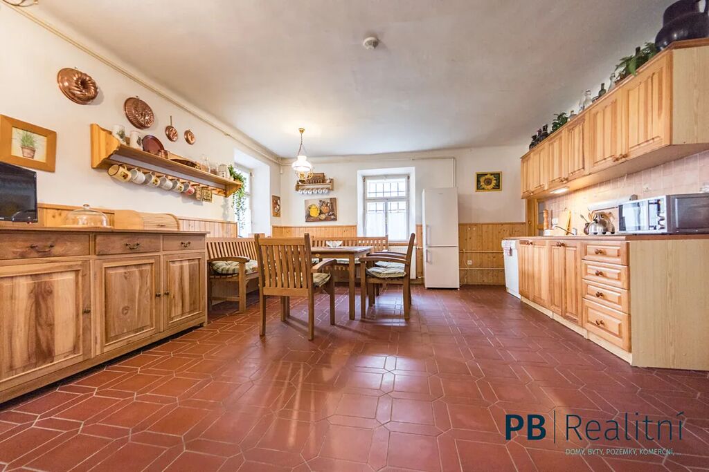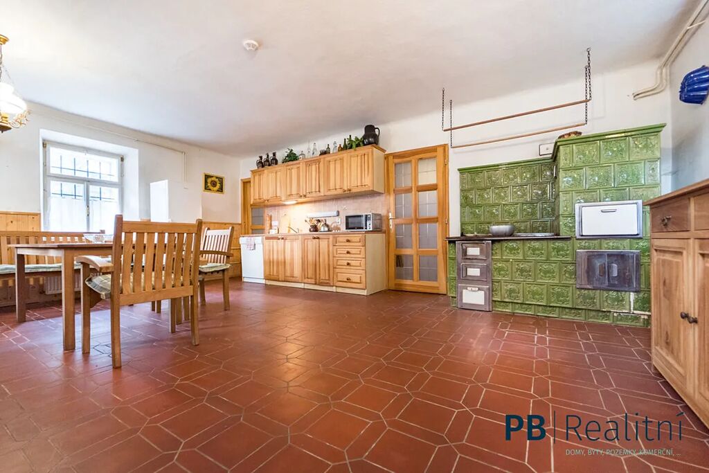 • Přízemí: obytné prostory v původním stylu, krb, kachlová kamna, kuchyně, sociální zázemí
