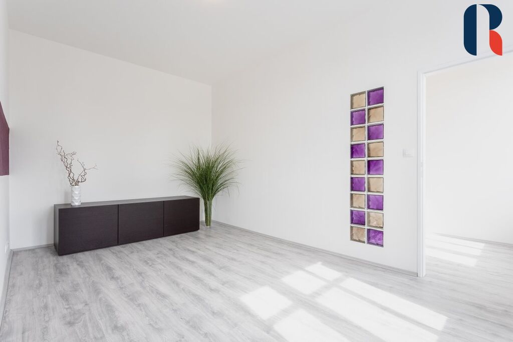 Byt je po kompletní rekonstrukci s novou dlažbou, plovoucí podlahou a novými prosklenými dveřmi. V bytě jsou nové skleněné konvektory s digitálním termostatem, nové rozvody elektřiny, vody a odpadu. Byt je vybaven TV, SAT a internetovou přípojkou. Byt se skládá ze vstupní chodby, pokoje s kuchyňským koutem, ložnicí, koupelnou s obkladem z mozaiky, se sprchovým koutem s podomítkovou baterií, se skleněnou zástěnou a samostatným WC s geberitem. Je vybaven moderní kuchyňskou linkou s obkladem z kamene, se spotřebiči (sklokeramická varná deska, horkovzdušná trouba, digestoř) a barevnými luxfery. Byt je vzdušný, světlý a elegantní. Výhled do zahrady.