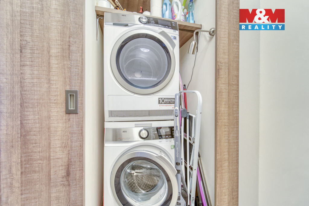 Byt byl kolaudován v roce 2017 a je proveden ve vyšším standardu. Kuchyňská linka je vybavena kvalitními spotřebiči Whirlpool, samozřejmostí jsou předokenní rolety na dálkové ovládání, zděný sklep a garážové stání v domě. Interiér působí elegantně, svěže a nabízí dostatek prostoru i světla.