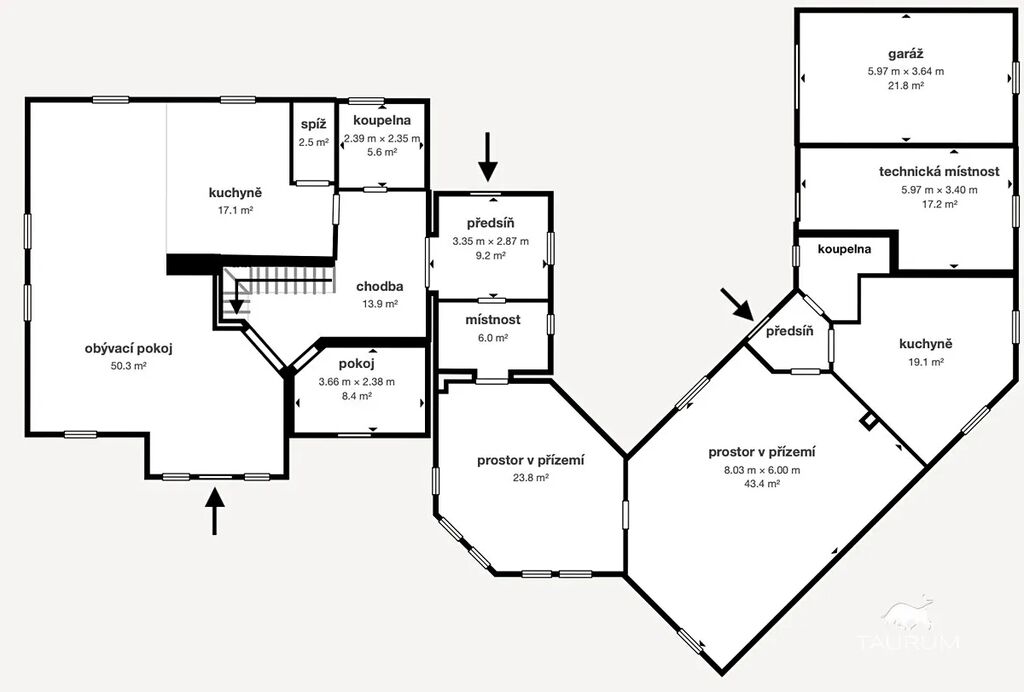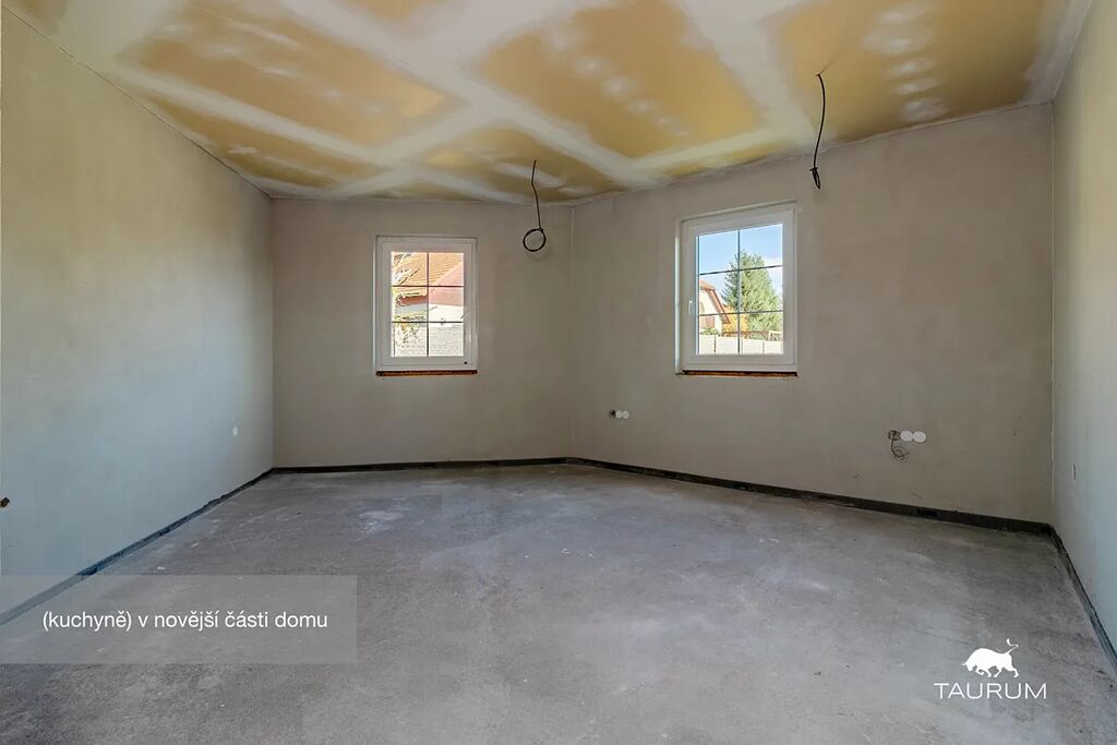 Novější část je o výměře 92 m² a dispozici 2+1, kde koupelna a kuchyň jsou připraveny k finalizaci dle představ budoucího majitele. Tato část může sloužit nejen jako samostatné bydlení pro členy rodiny, ale např. pro pronájem nebo jako kanceláře a díky samostatnému vstupu nenaruší soukromí hlavní části domu.