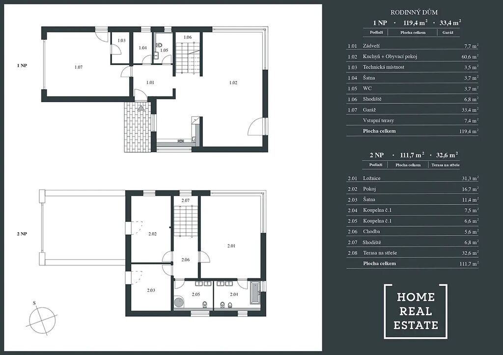 - střešní terasa: 32,6 m²