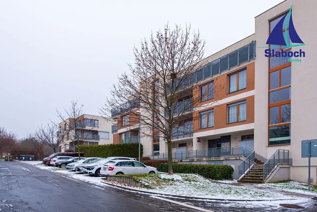 K bytu naleží a je součástí ceny široké a prostorné krajní parkovací stání a sklepní koje (3m2) v 1 podzemním podlaží domu, kamerový systém ve vjezdu do garáží a ve vstupu do domu, v domě kolárna a kočárkárna, dům je bezbariérový, vytápění bytu pomocí centrálního kotle v domě.
