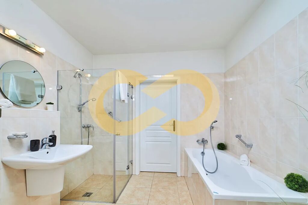Ložnice jsou v bytě dvě a jedna z nich má vlastní šatnu. V koupelně je vana, sprchový kout, toaleta i bidet. Další samostatné WC je na vstupní chodbě.