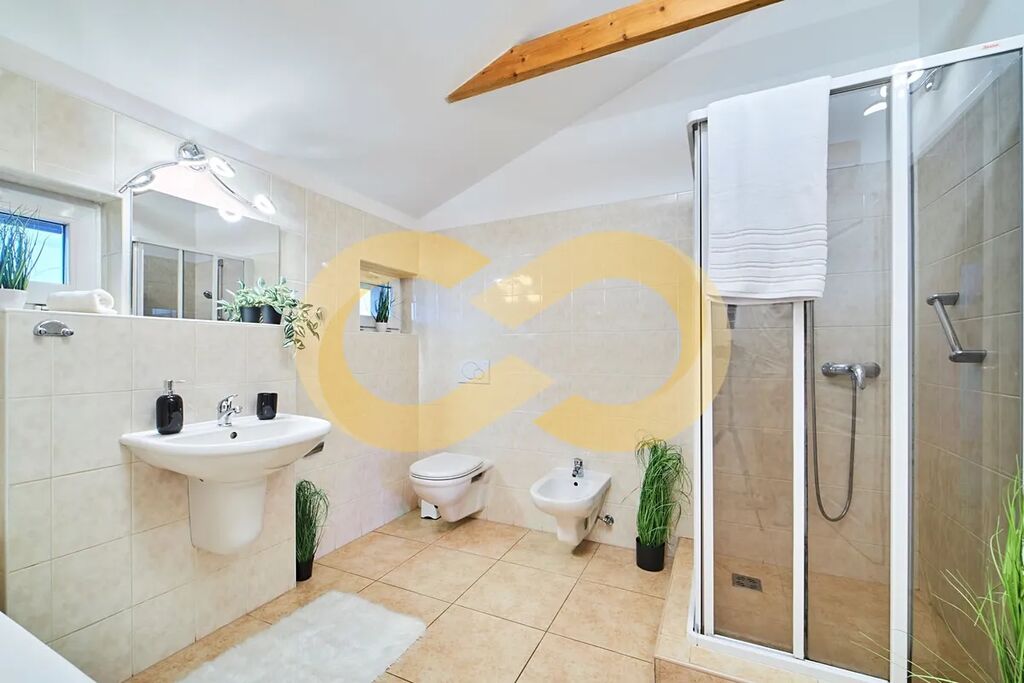 Dům je dvoupatrový, jeho celková výměra je 324 m2 a může být rozdělený na až 3 samostatné bytové jednotky. Na pozemku 1 000 m2 je zastřešená terasa, zahrada se vzrostlou zelení, bazénem a venkovním sklípkem.