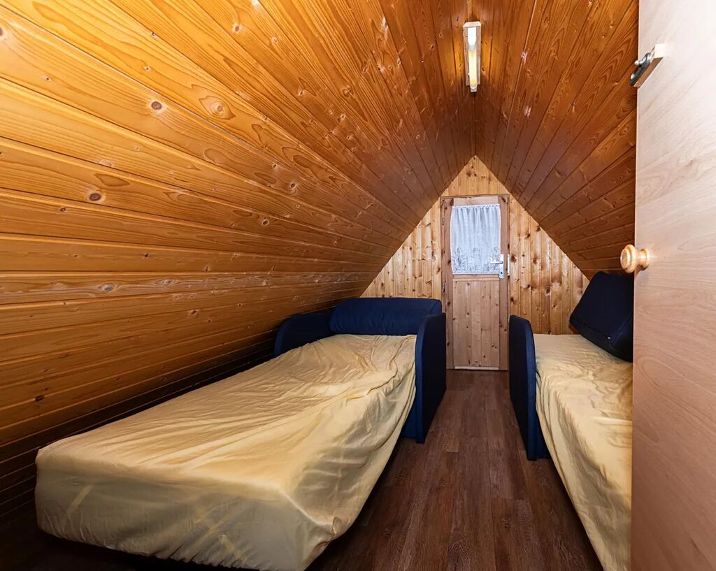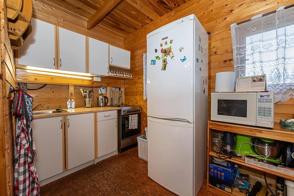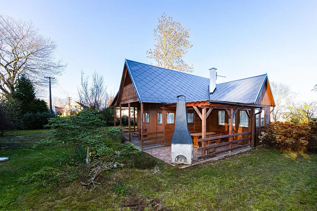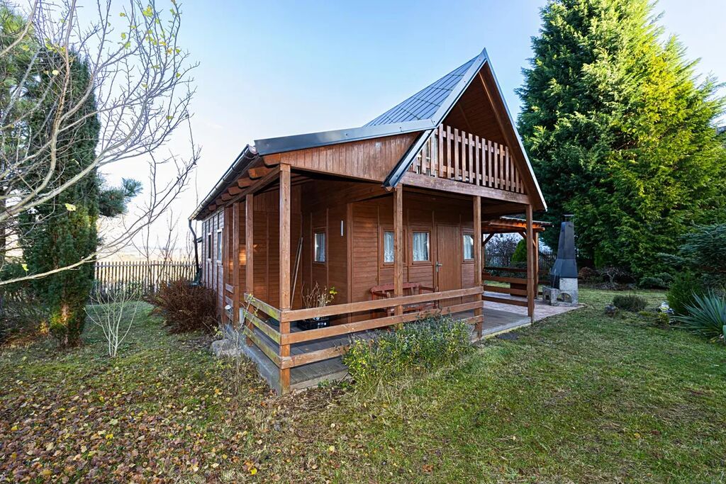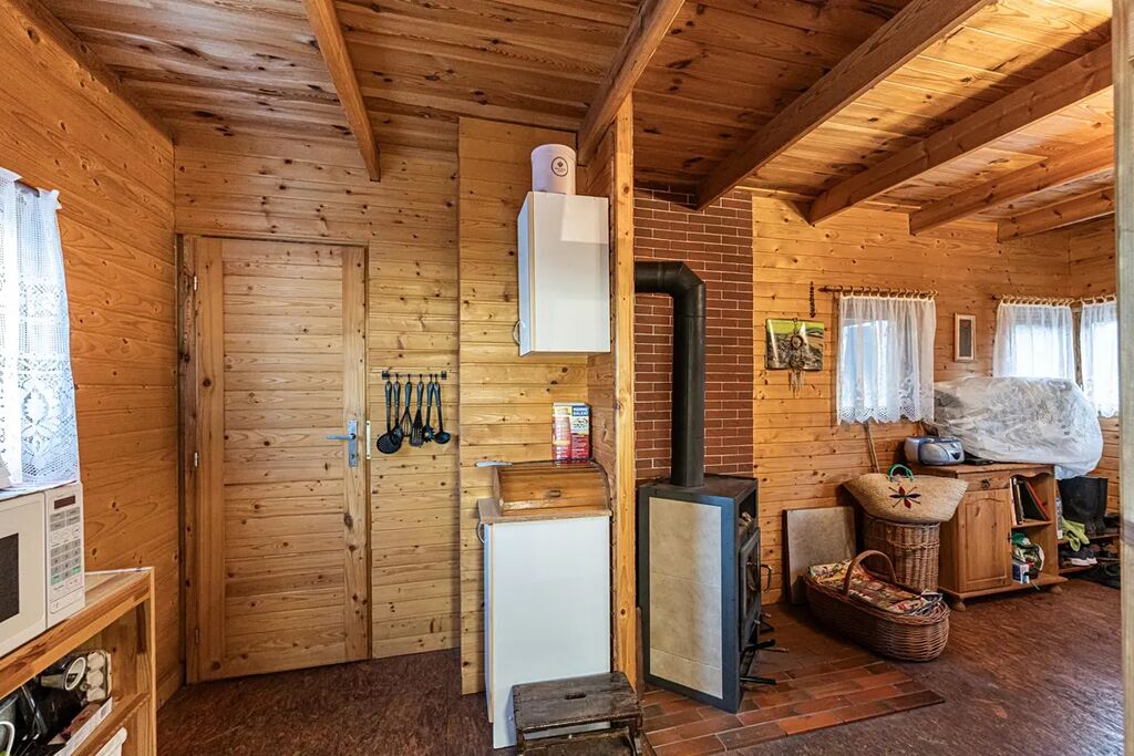 Na pozemku stojí také dřevěná chatka pro přespání, která je skvělá jako hostinský domek, dětský domek nebo prostor pro návštěvy.